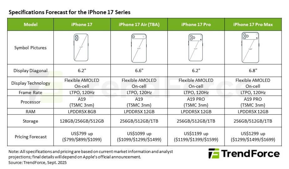 TrendForce: iPhone 17 Air будет стоить от 1099 долларов — за версию на 256 ГБ